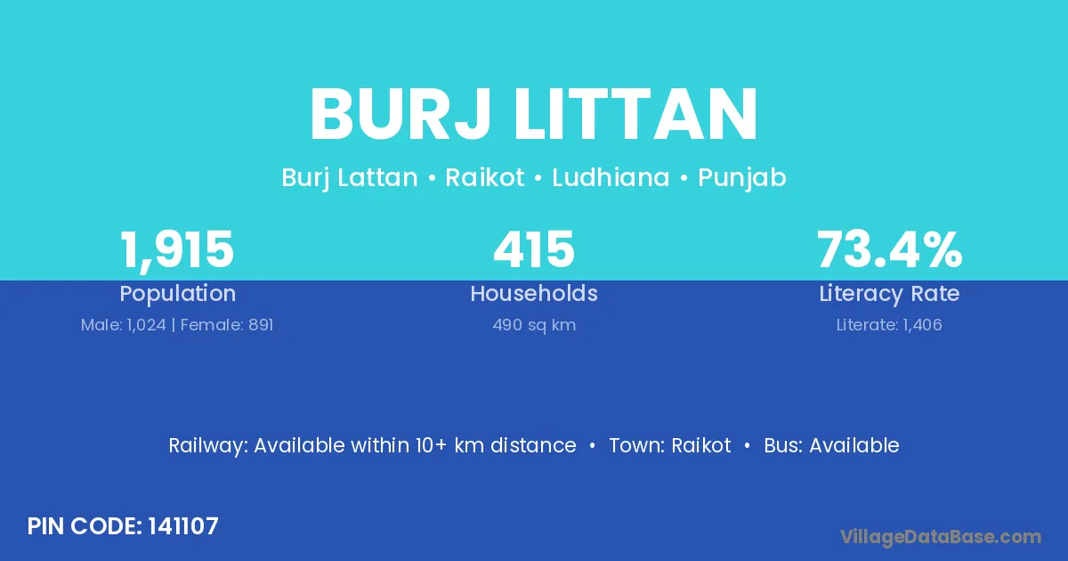 Burj Littan village has a total population of 1,915 people, of which 1,024 are males and 891 are females.