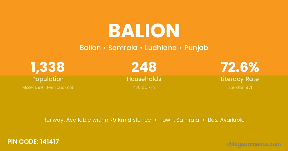 According to Census 2011 information, the village code of Balion village is 141417.