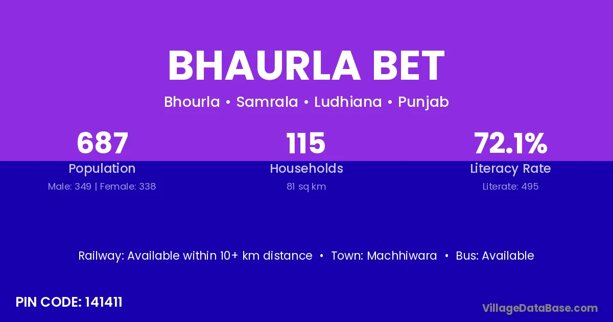 Machhiwara is the nearest town to Bhaurla Bet village for major economic activities