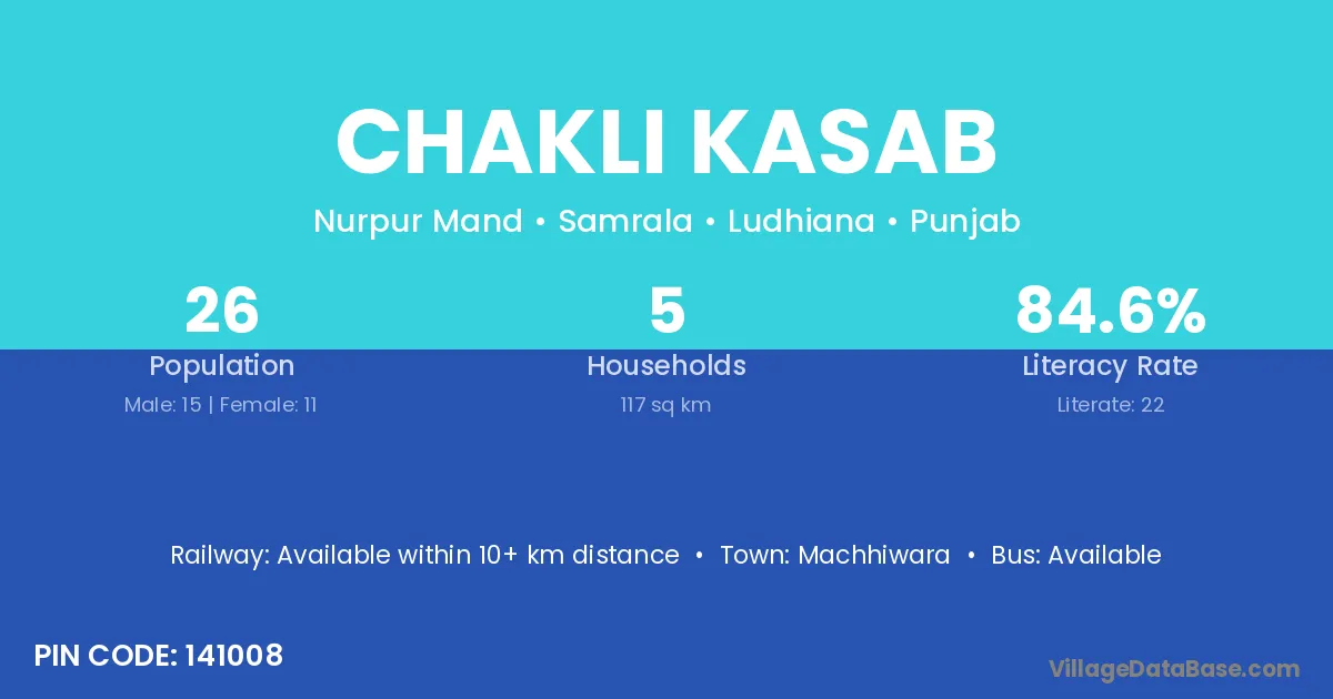 Machhiwara is the nearest town to Chakli Kasab village for major economic activities