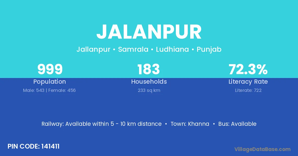 Khanna is the nearest town to Jalanpur village for major economic activities