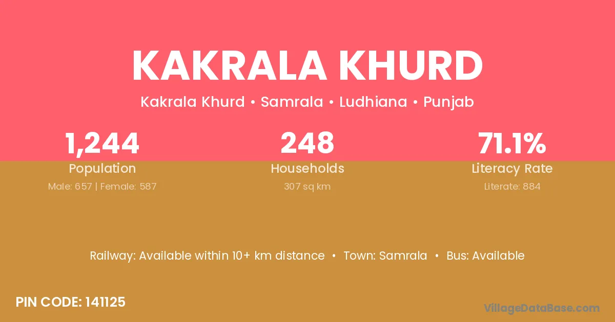 Samrala is the nearest town to Kakrala Khurd village for major economic activities