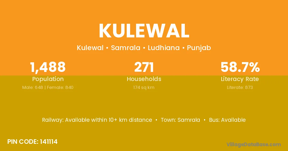 According to Census 2011 information, the village code of Kulewal village is 141114.