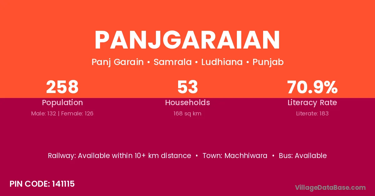 Machhiwara is the nearest town to Panjgaraian village for major economic activities