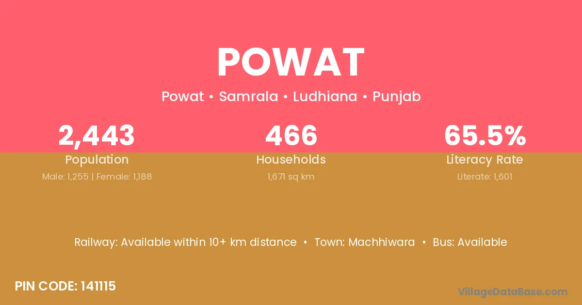 Powat village is located in the Samrala Tehsil of the Ludhiana district in Punjab .