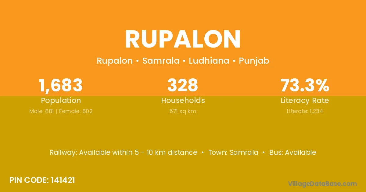 Rupalon village has a total population of 1,683 people, of which 881 are males and 802 are females.