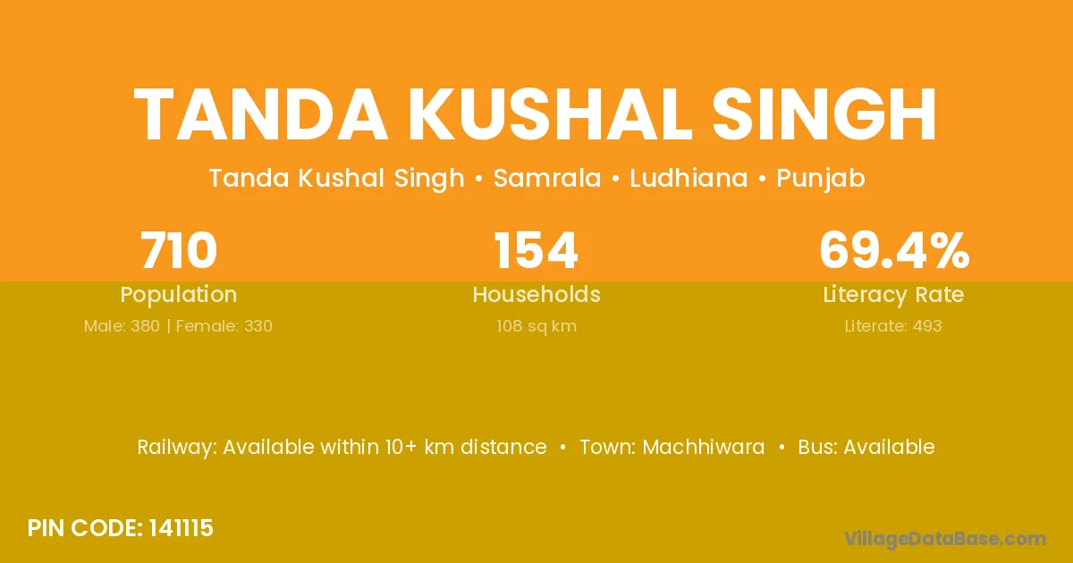 Tanda Kushal Singh village has a total population of 710 people, of which 380 are males and 330 are females.