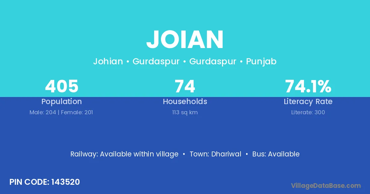 Joian village has a total population of 791 people, of which 432 are males and 359 are females.