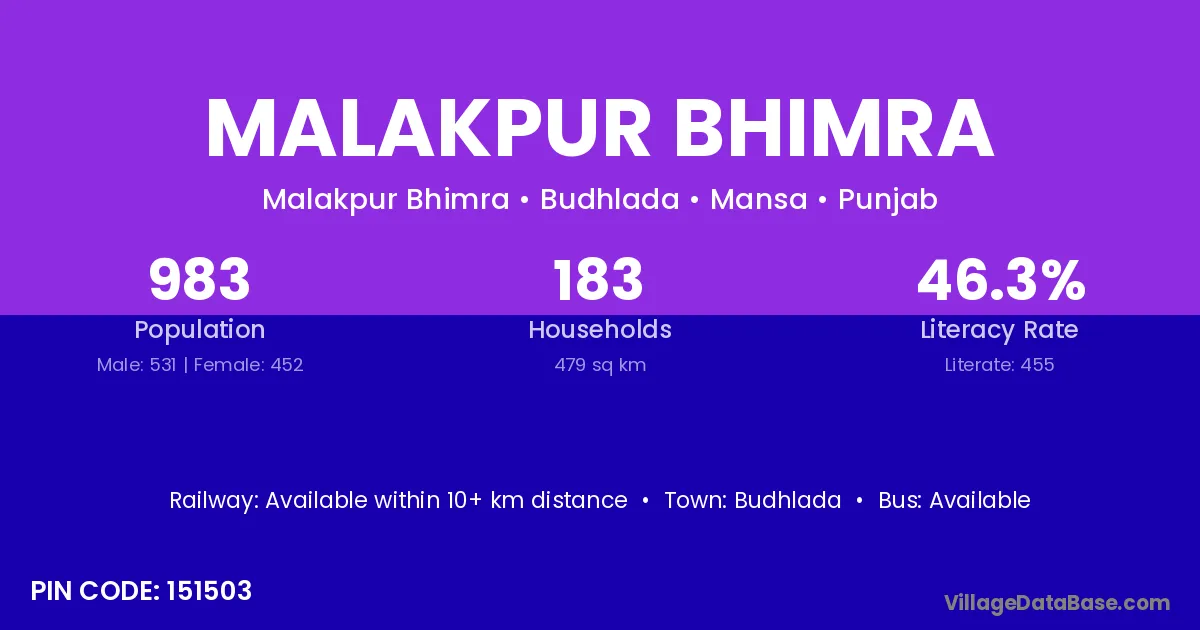 Budhlada is the nearest town to Malakpur Bhimra village for major economic activities