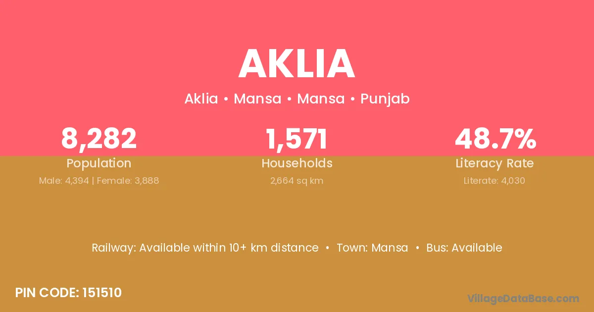 Aklia village is located in the Mansa Tehsil of the Mansa district in Punjab .