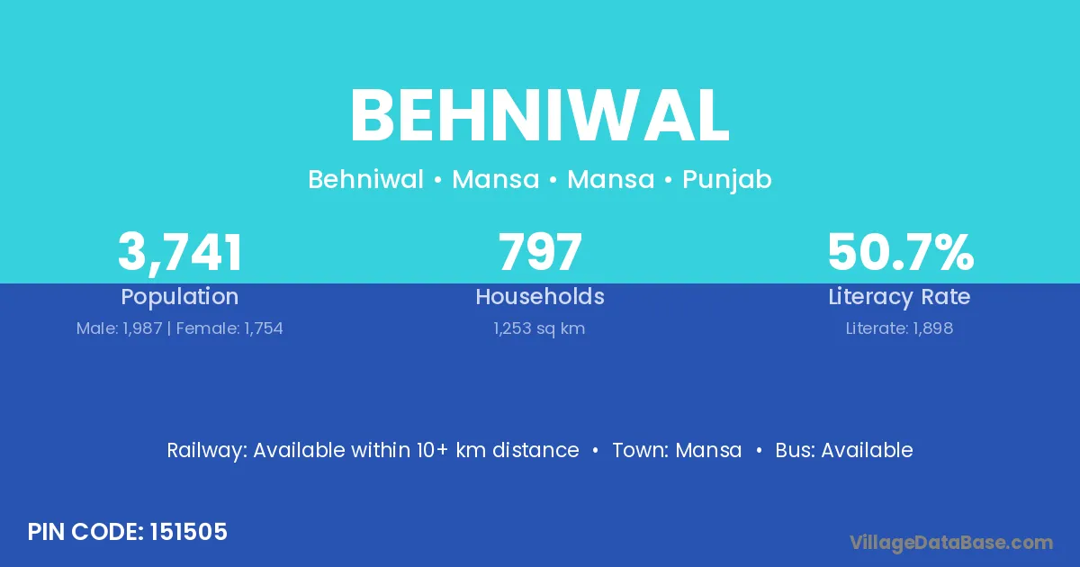 Mansa is the nearest town to Behniwal village for major economic activities
