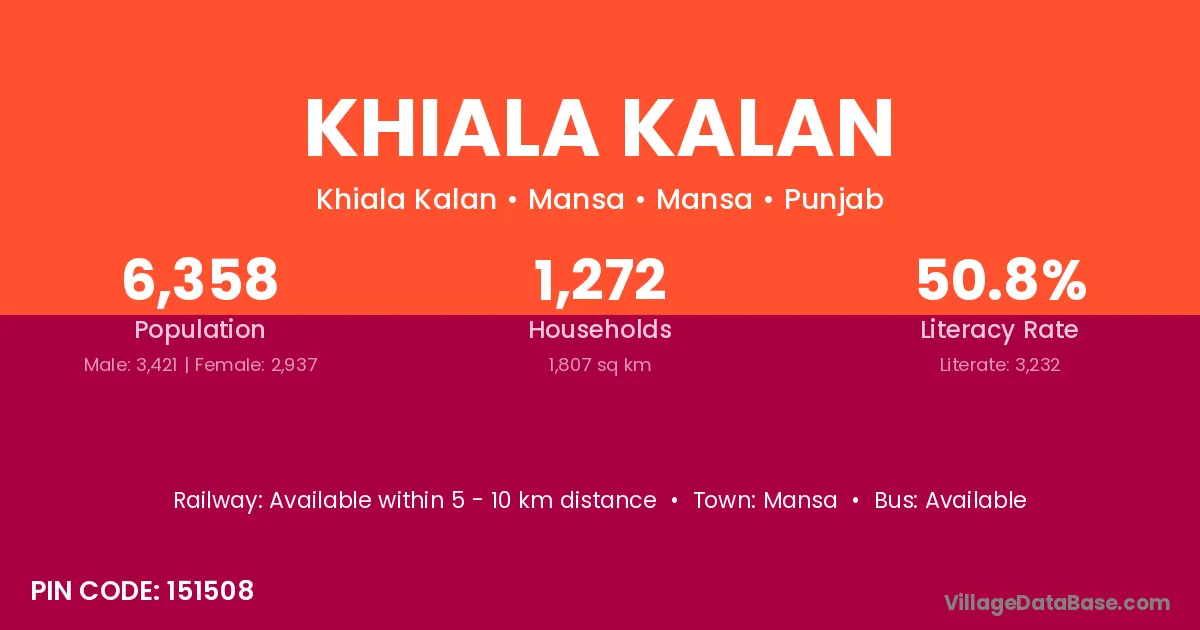 Mansa is the nearest town to Khiala Kalan village for major economic activities