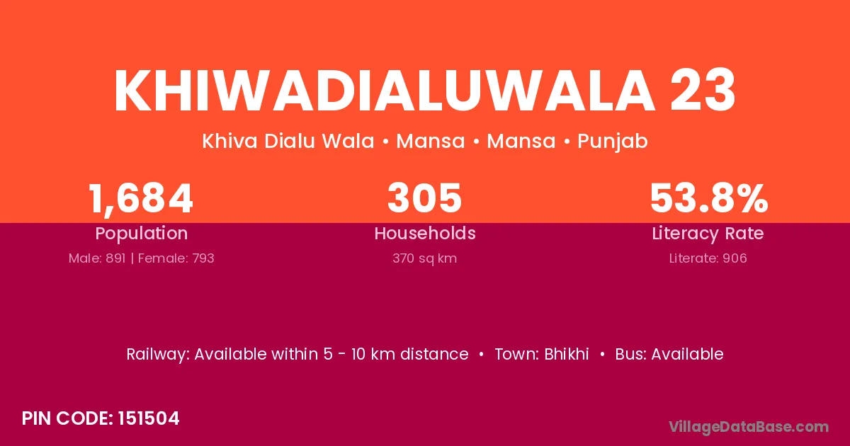 Bhikhi is the nearest town to Khiwadialuwala 23 village for major economic activities