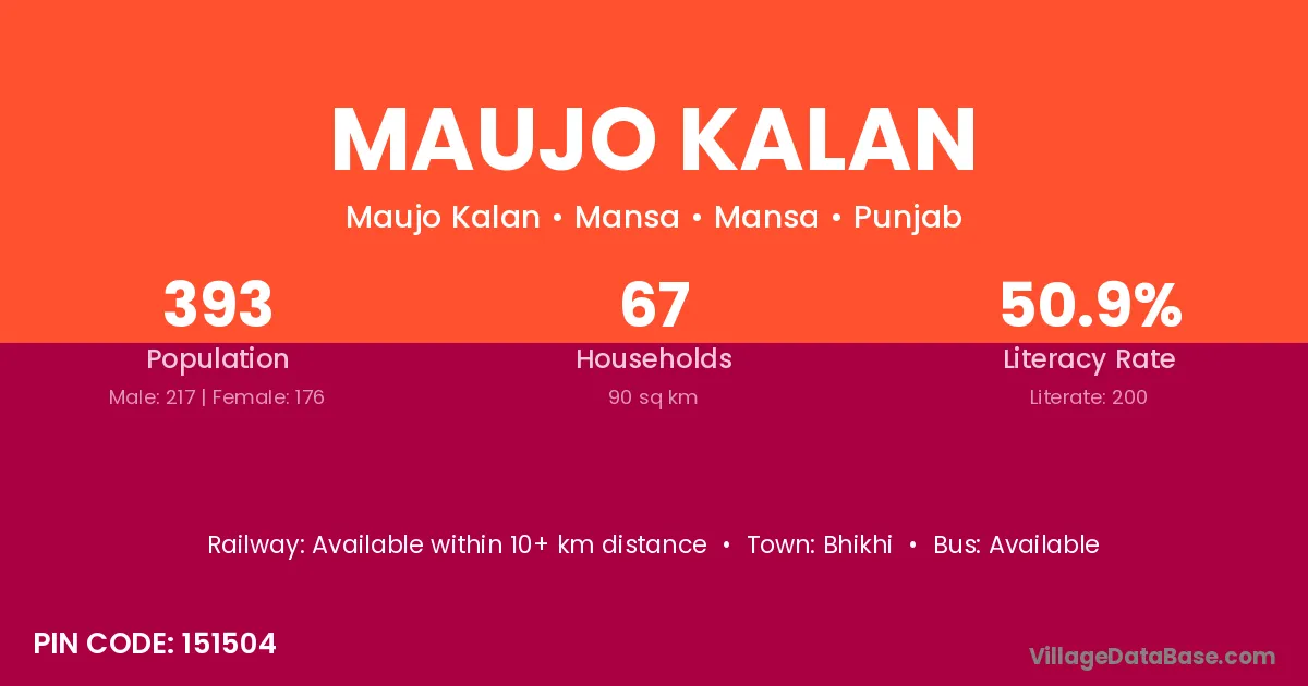 Maujo Kalan village has a total population of 393 people, of which 217 are males and 176 are females.