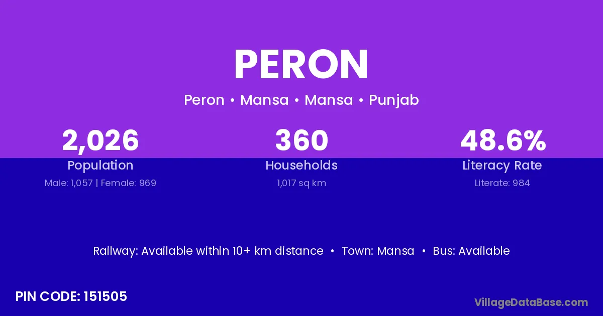 Peron village has a total population of 2,026 people, of which 1,057 are males and 969 are females.