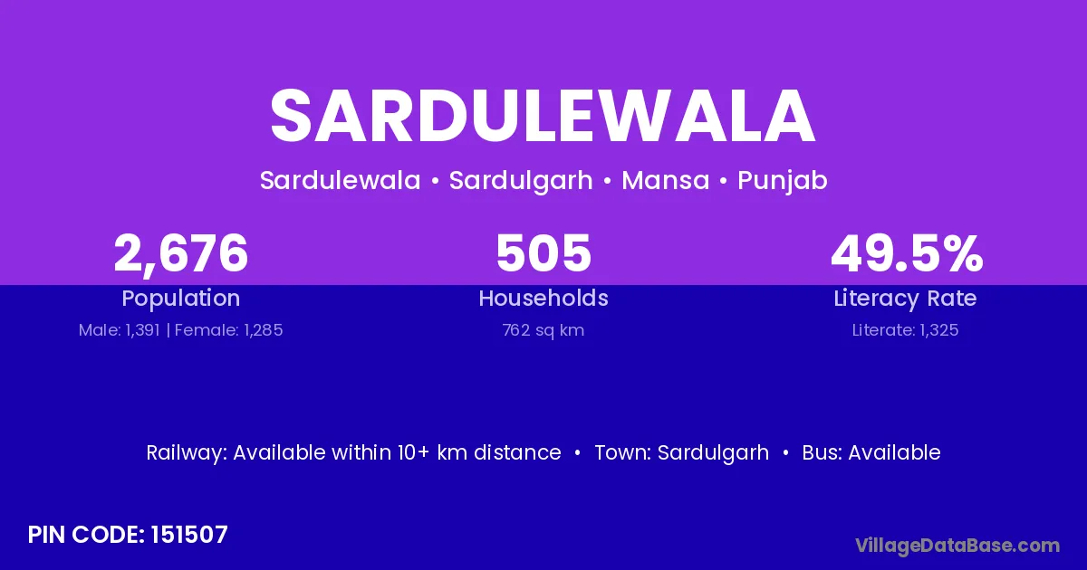 Sardulgarh is the nearest town to Sardulewala village for major economic activities