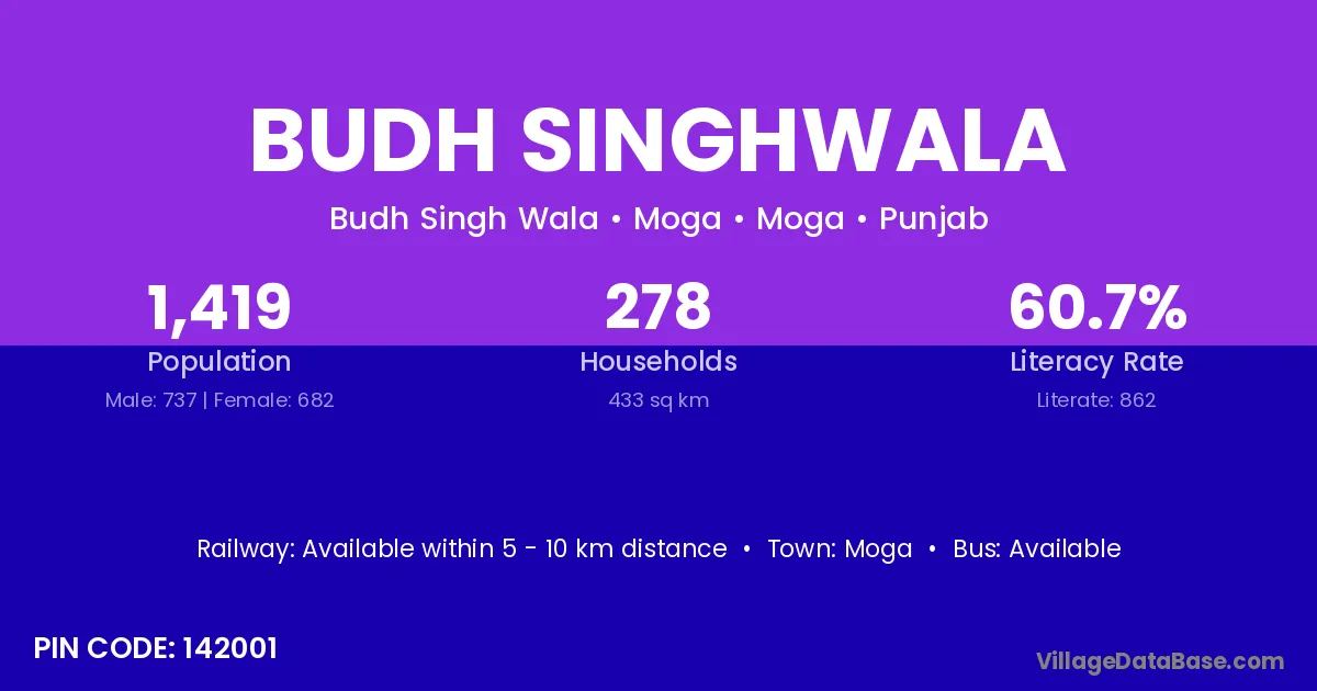 Bagha Purana is the nearest town to Budh Singhwala village for major economic activities