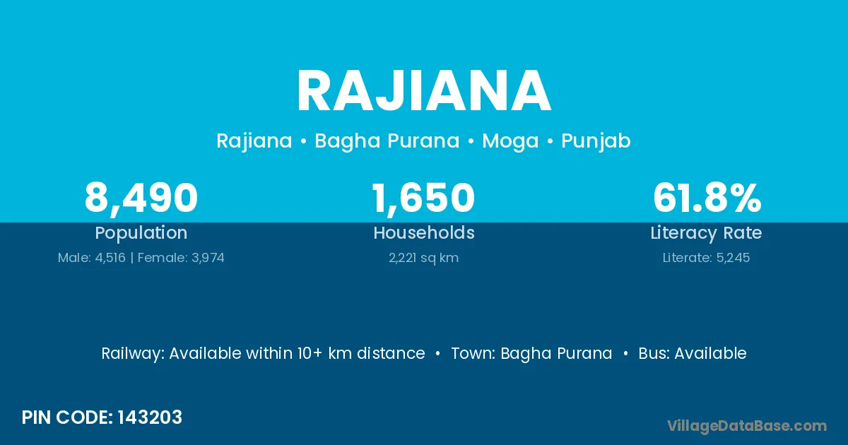 Bagha Purana is the nearest town to Rajiana village for major economic activities