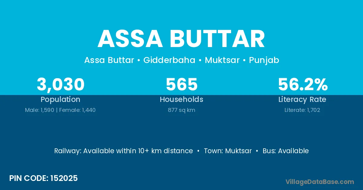 Muktsar is the nearest town to Assa Buttar village for major economic activities