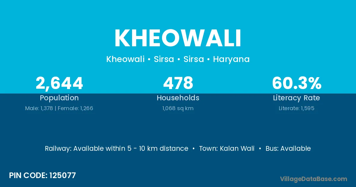 Dabwali is the nearest town to Kheowali village for major economic activities