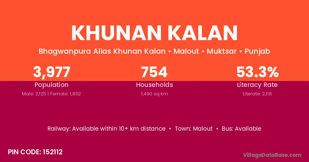 Malout is the nearest town to Khunan Kalan village for major economic activities