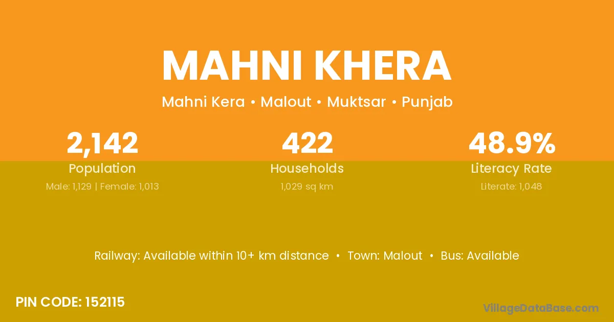 Malout is the nearest town to Mahni Khera village for major economic activities