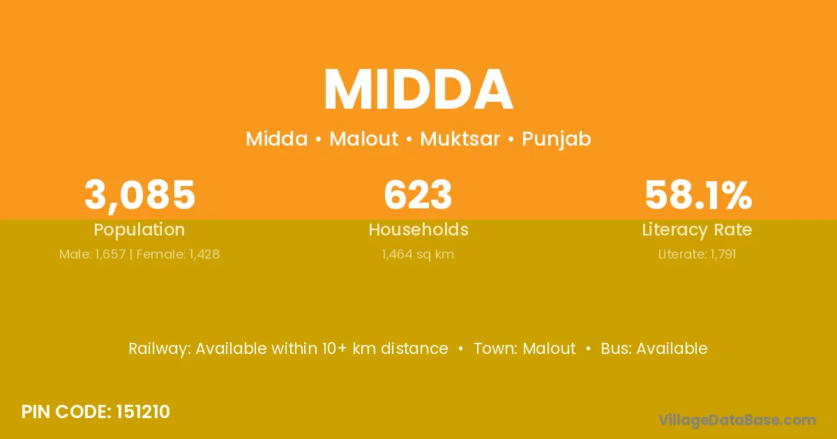 Midda village is located in the Malout Tehsil of the Muktsar district in Punjab .
