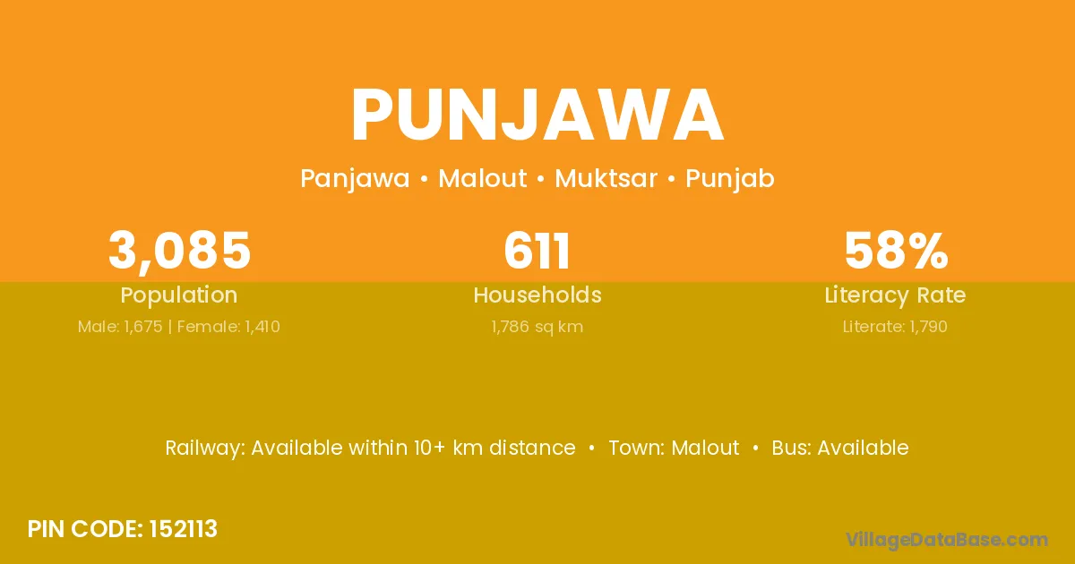 Punjawa village has a total population of 3,085 people, of which 1,675 are males and 1,410 are females.