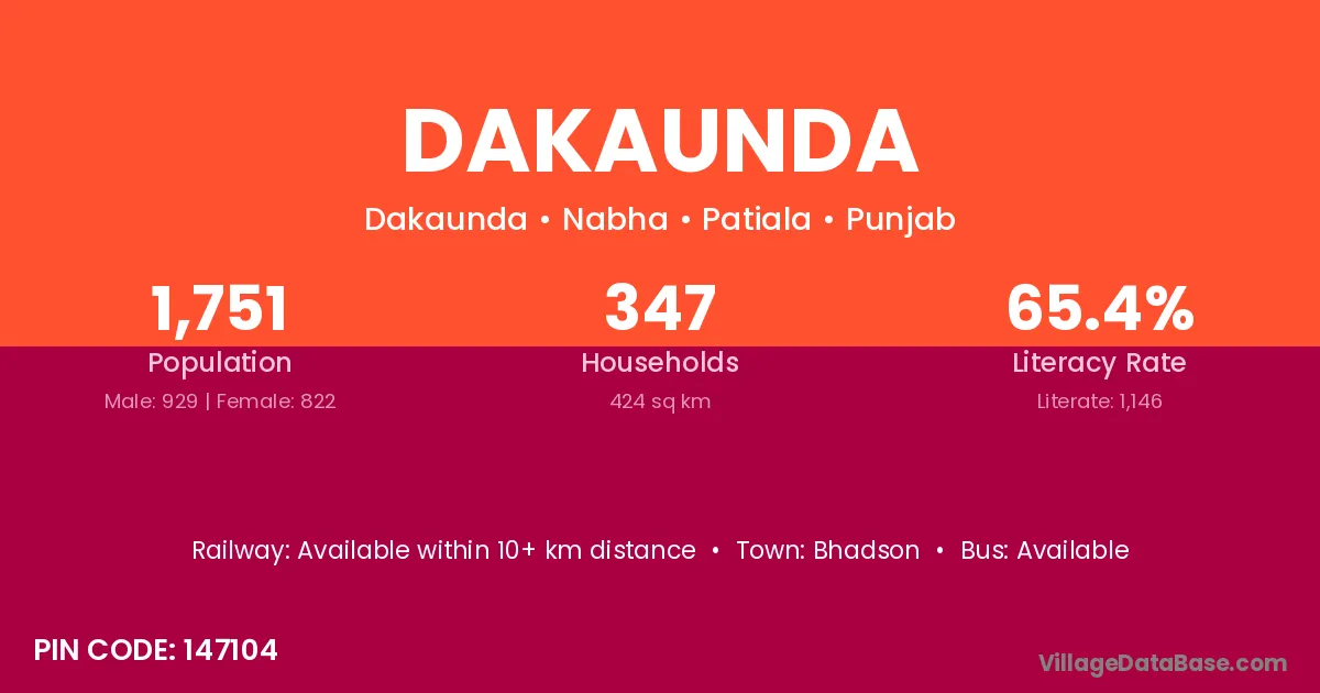Bhadson is the nearest town to Dakaunda village for major economic activities