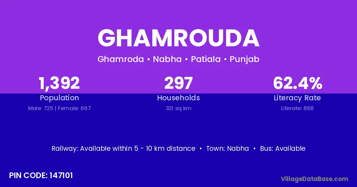 According to Census 2011 information, the village code of Ghamrouda village is 147101.