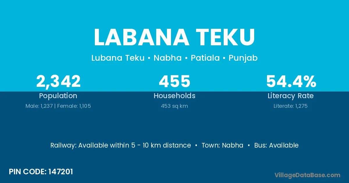 Nabha is the nearest town to Labana Teku village for major economic activities