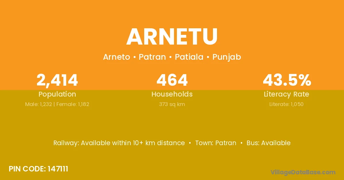 According to Census 2011 information, the village code of Arnetu village is 147111.