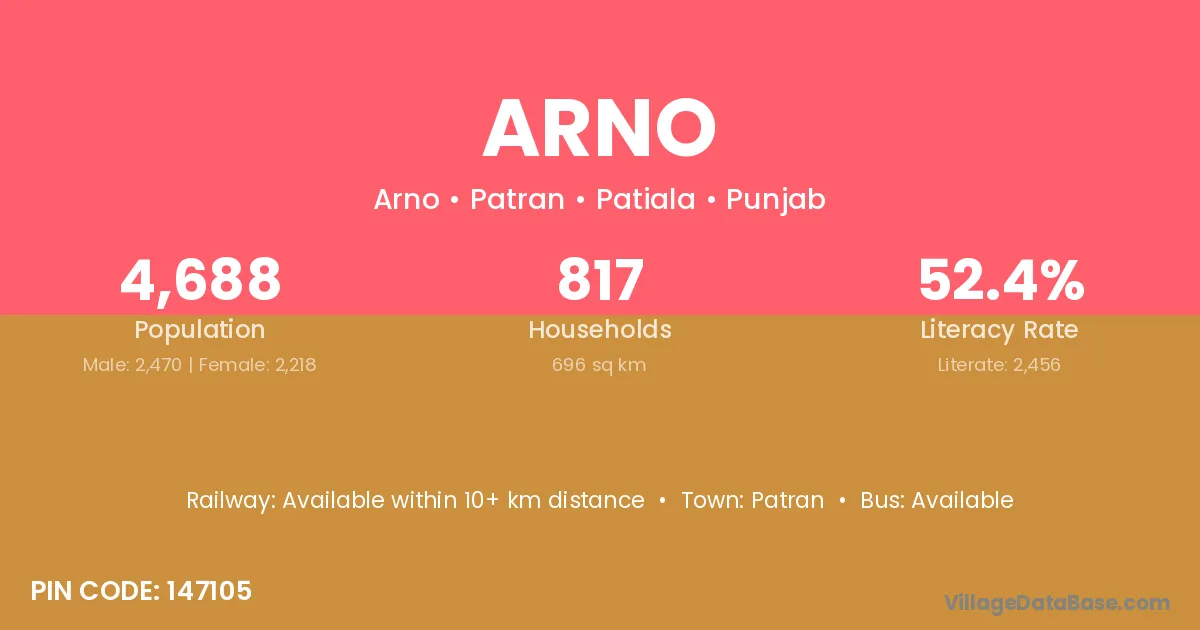 According to Census 2011 information, the village code of Arno village is 147105.