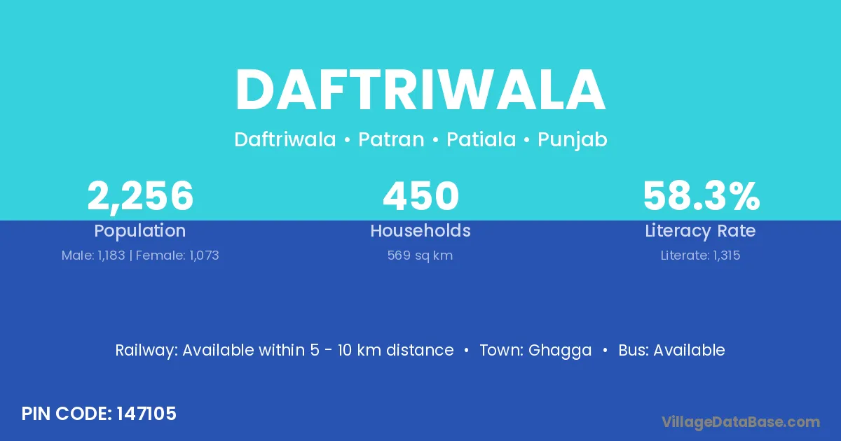 According to Census 2011 information, the village code of Daftriwala village is 147105.
