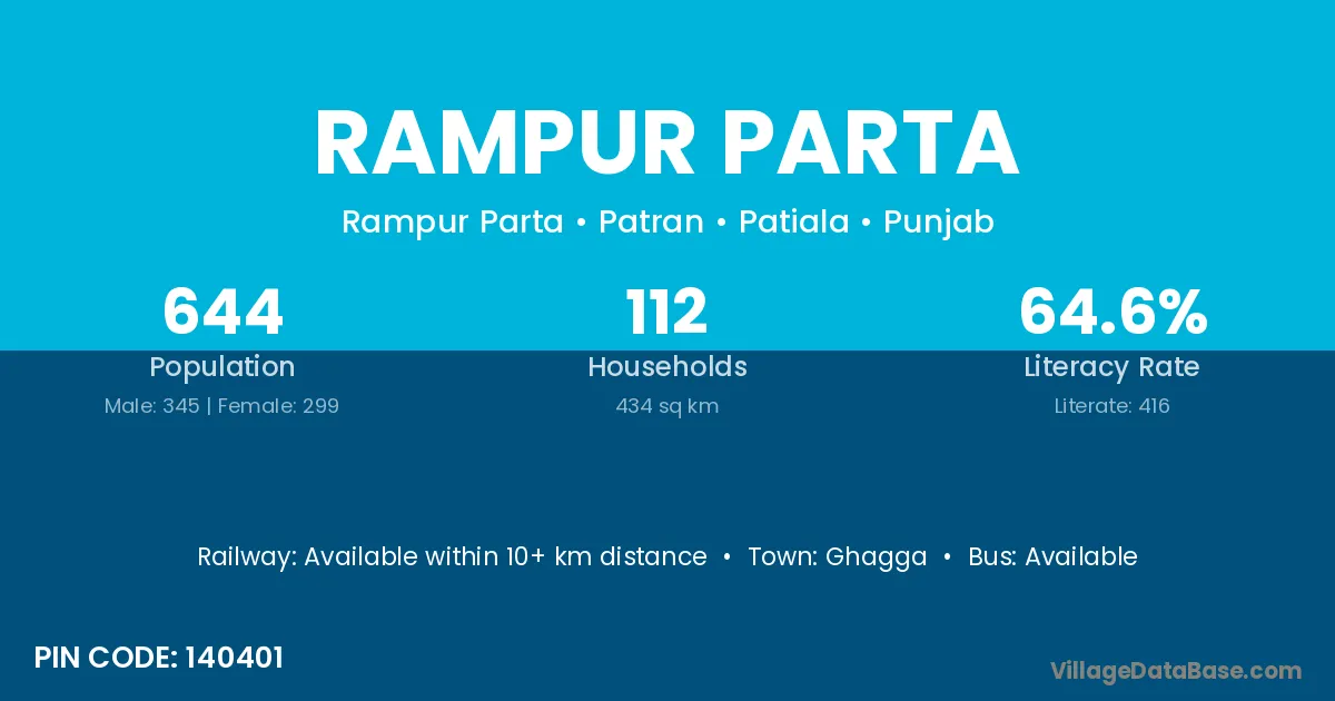 Rampur Parta village has a total population of 644 people, of which 345 are males and 299 are females.