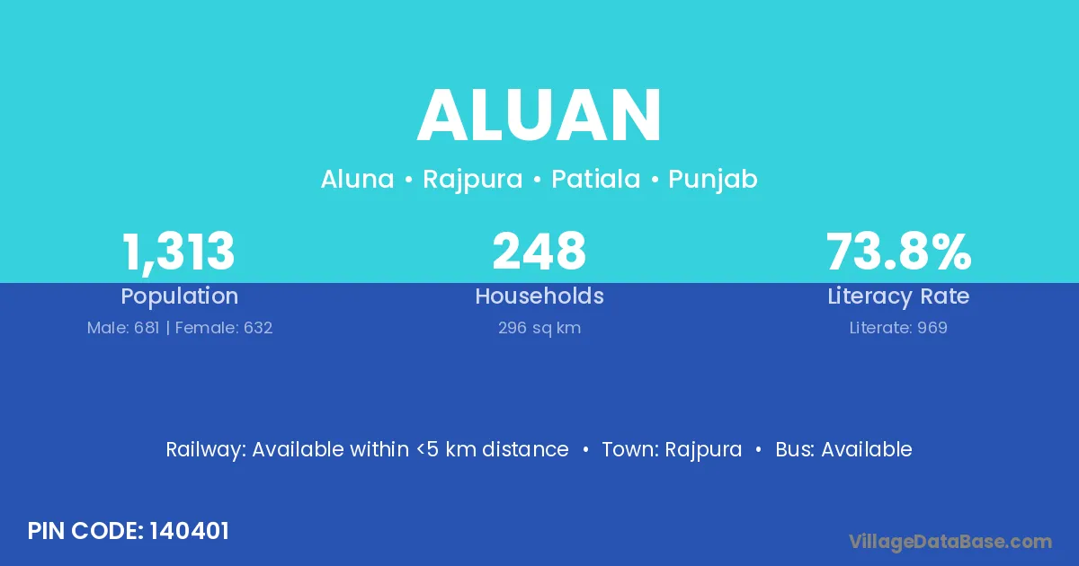 Rajpura is the nearest town to Aluan village for major economic activities