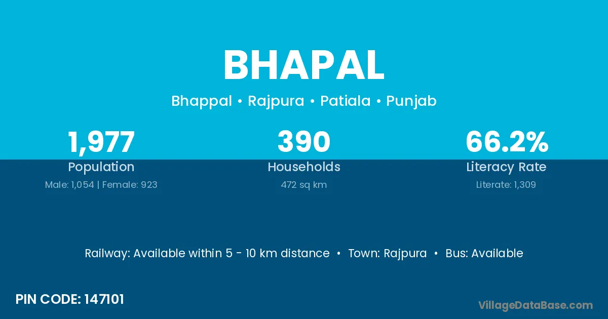 Rajpura is the nearest town to Bhapal village for major economic activities