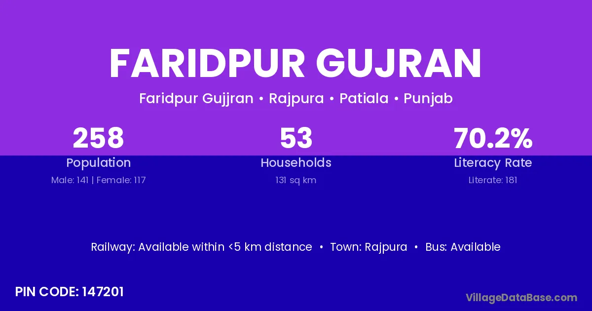 Rajpura is the nearest town to Faridpur Gujran village for major economic activities