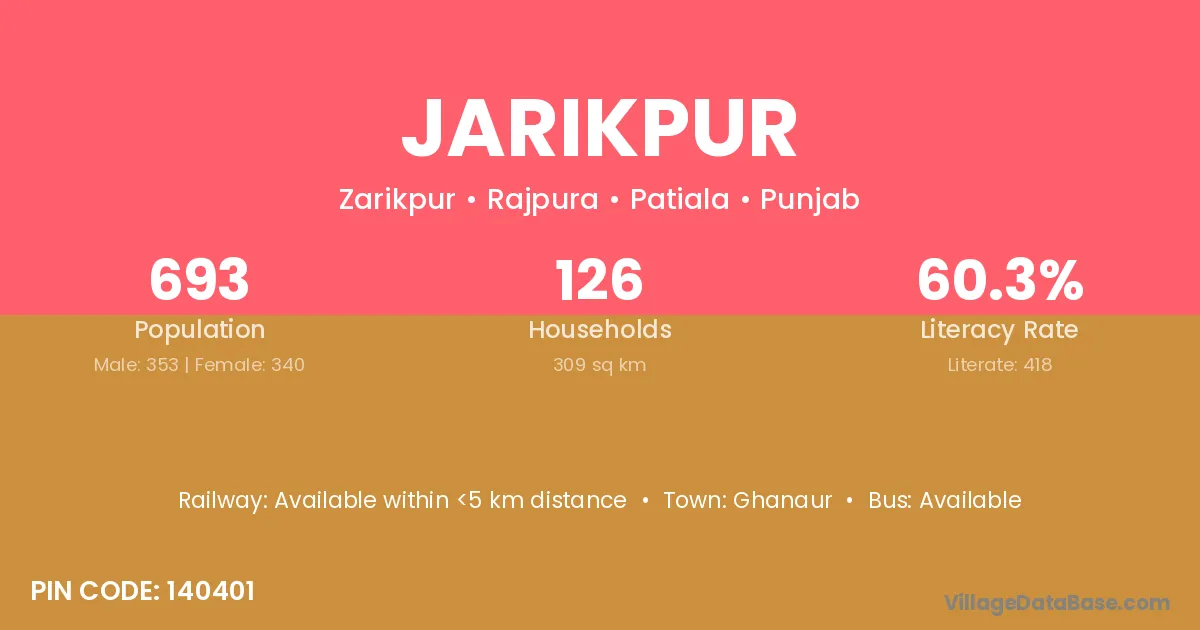 Ghanaur is the nearest town to Jarikpur village for major economic activities