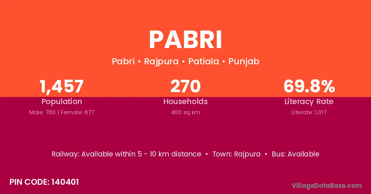 According to Census 2011 information, the village code of Pabri village is 140401.