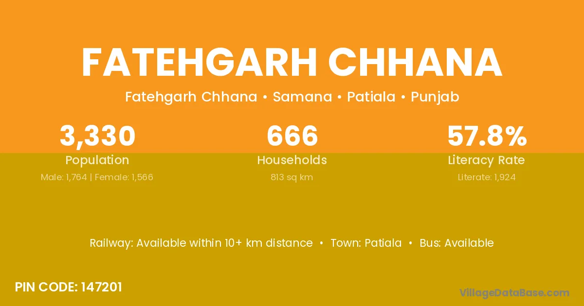 There are approximately 666 households in Fatehgarh Chhana village.