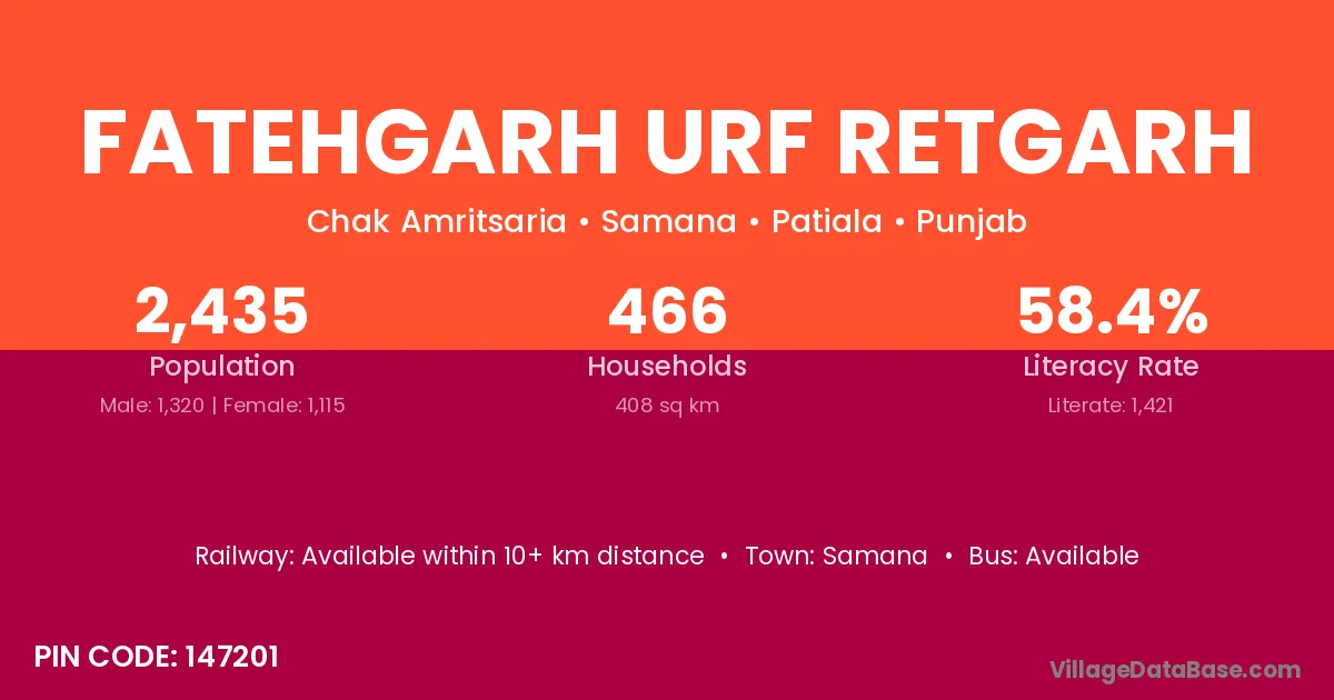 Samana is the nearest town to Fatehgarh Urf Retgarh village for major economic activities