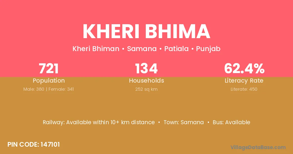 Samana is the nearest town to Kheri Bhima village for major economic activities