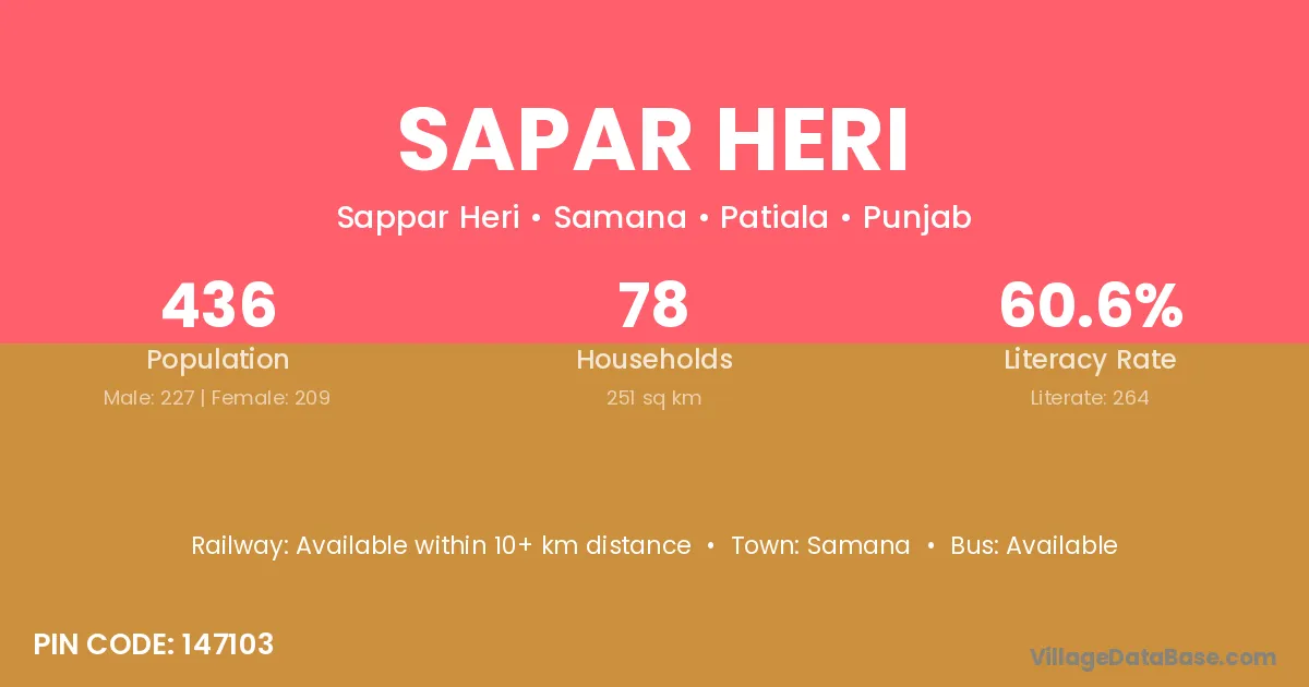 Samana is the nearest town to Sapar Heri village for major economic activities