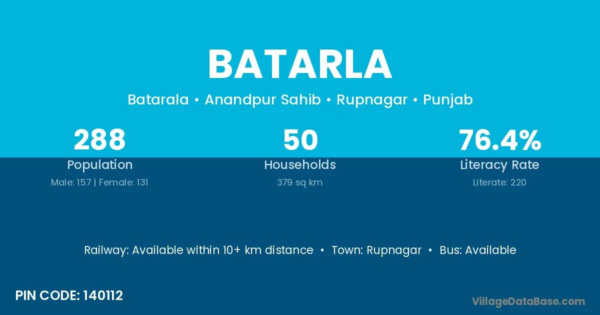 Rupnagar is the nearest town to Batarla village for major economic activities