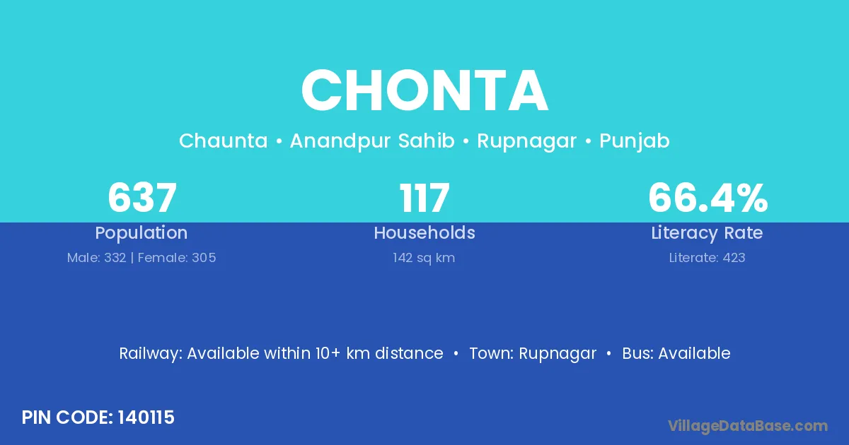 Rupnagar is the nearest town to Chonta village for major economic activities