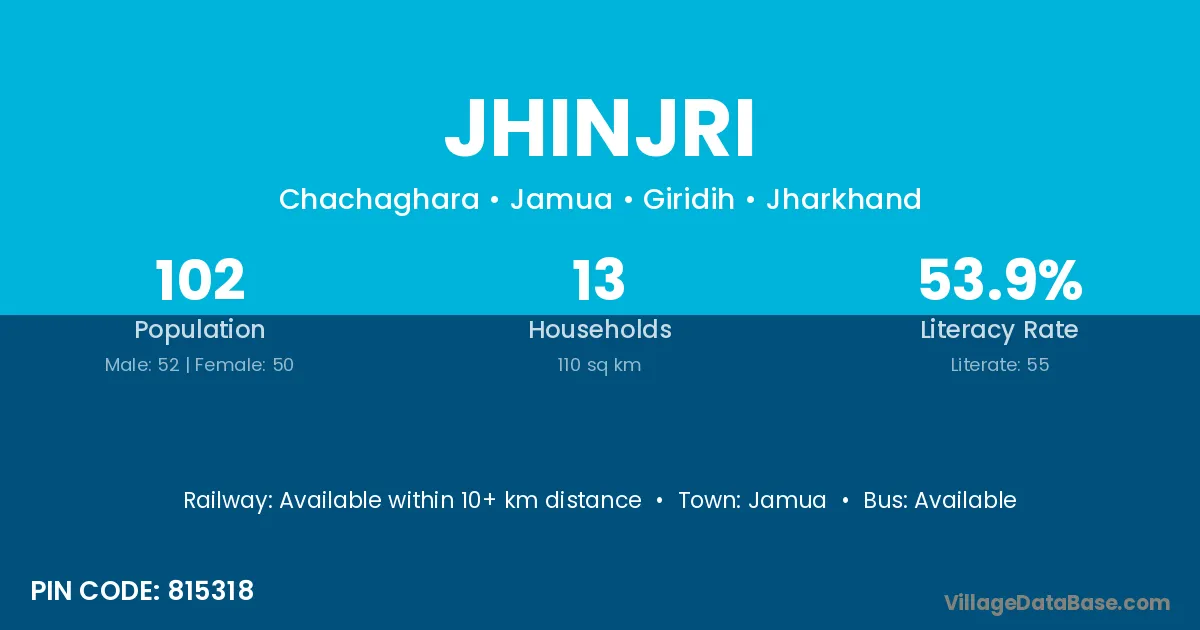 Jhinjri village has a total population of 2,865 people, of which 1,436 are males and 1,429 are females.