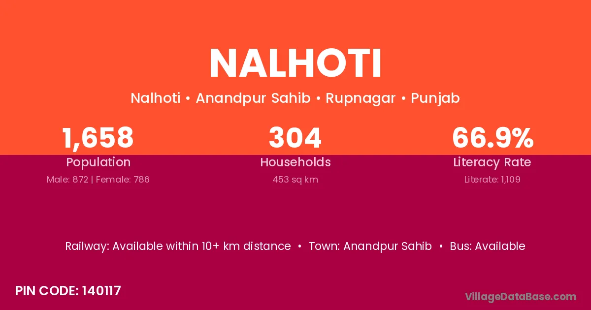 Anandpur Sahib is the nearest town to Nalhoti village for major economic activities