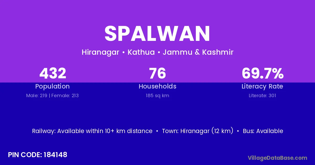 Spalwan village has a total population of 326 people, of which 167 are males and 159 are females.