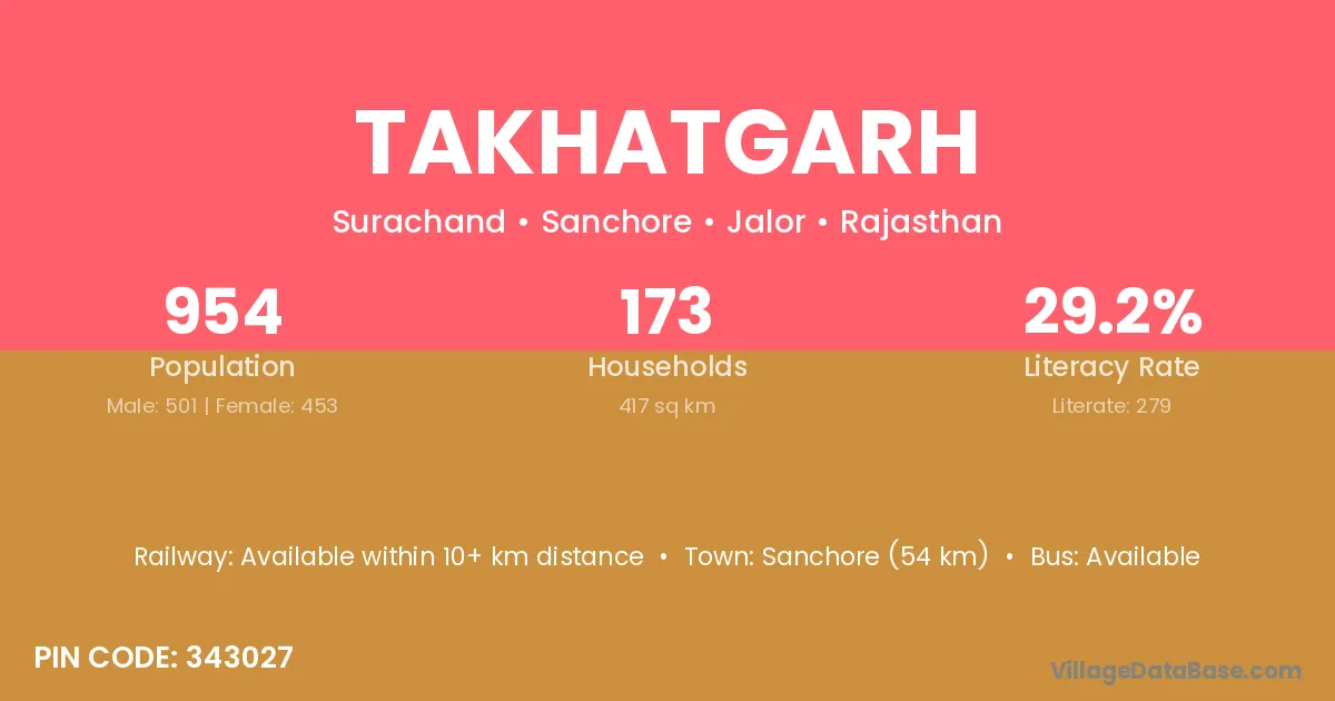 According to Census 2011 information, the village code of Takhatgarh village is 140119.